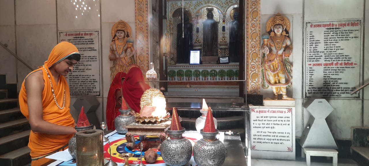 इसके पूर्व श्री अरनाथ भगवान के पादमूल में श्री जी का अभिषेक एवं शांतिधारा करने का मुख्य सौभाग्य श्री योगेंद्र जैन के सुपुत्र यश जैन के जन्मदिन के उपलक्ष्य में परिवार को प्राप्त हुआ और उन्हीं के द्वारा श्री अरहनाथ विधान संपन्न किया गया। श्री गुरुकुलम के छात्रों को मिष्ठान वितरण भी सेठ परिवार द्वारा किया गया।