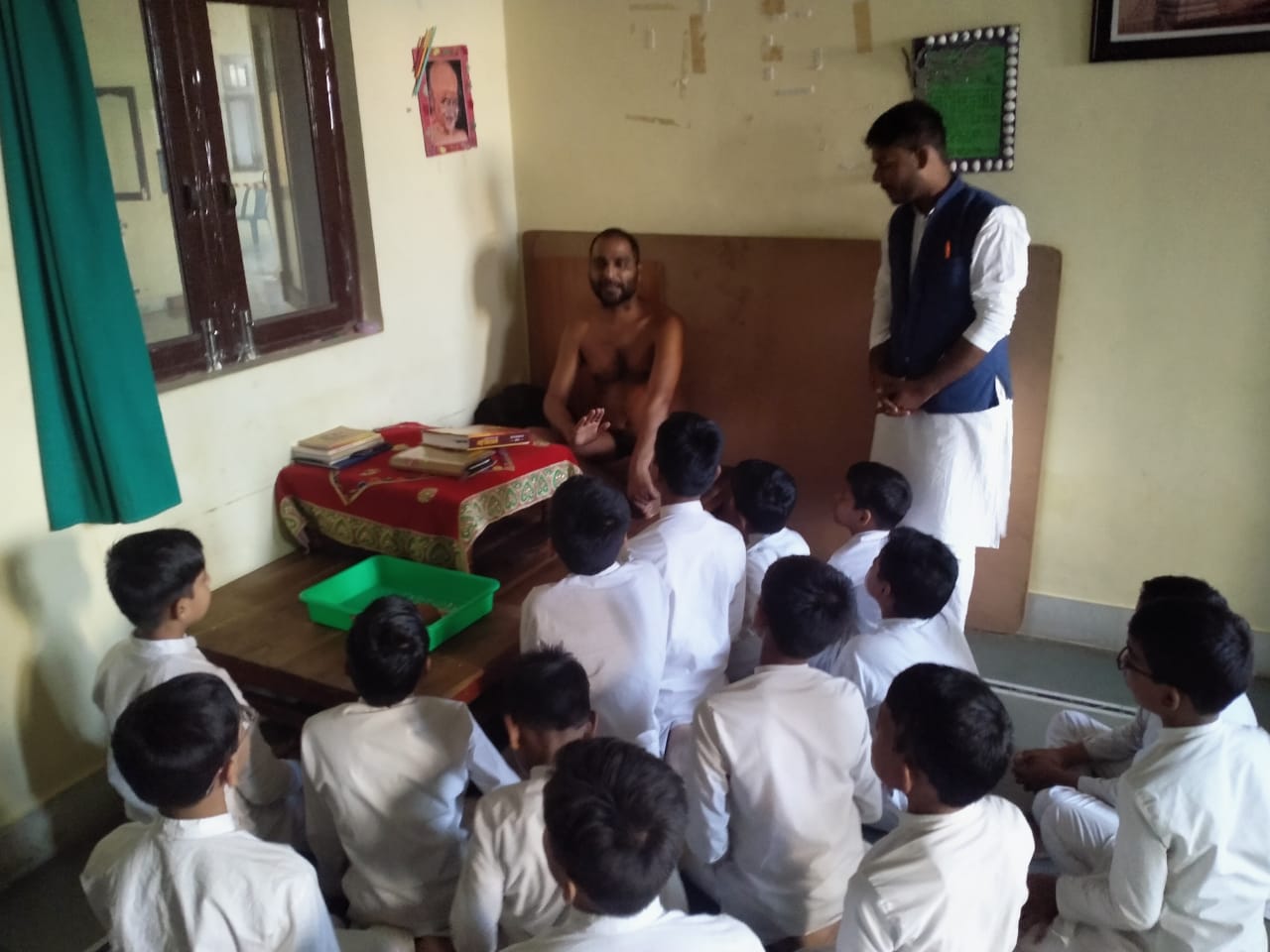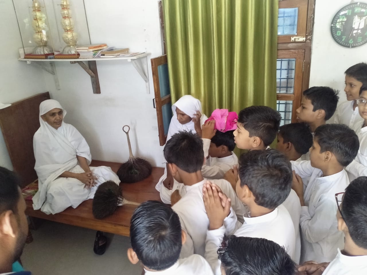 निर्यापक श्रमण श्री समय सागर जी महाराज का मिला आशीर्वाद: नन्हे मुन्ने बच्चों को देखकर प्रसन्नता व्यक्त की औऱ बच्चों से कुछ प्रश्न पूछें एवं अपना बहुमूल्य समय हम सबको दिया औऱ संघस्थ साधुओं का आशीर्वाद प्राप्त हुआ । औऱ धर्म की शिक्षा प्राप्त हुई । समस्त छात्रों ने खूब आंनद का लाभ उठाया।