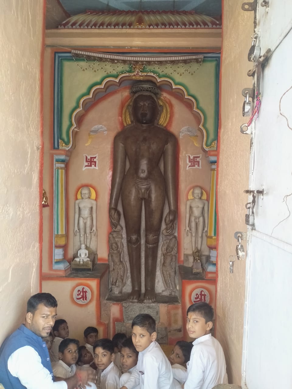15 अगस्त 2021: श्री गुरुकुलम में रविवार को छात्रों का भ्रमण।दूल्हादेव की मान्यता प्राप्त जैन क्षेत्रपाल जो श्वान के साथ हैं, इनके शिर पर अरिहंत बिम्ब का चिह्न भी है।यह क्षेत्र की दक्षिण में पहाड़ी पर स्थित हैं।