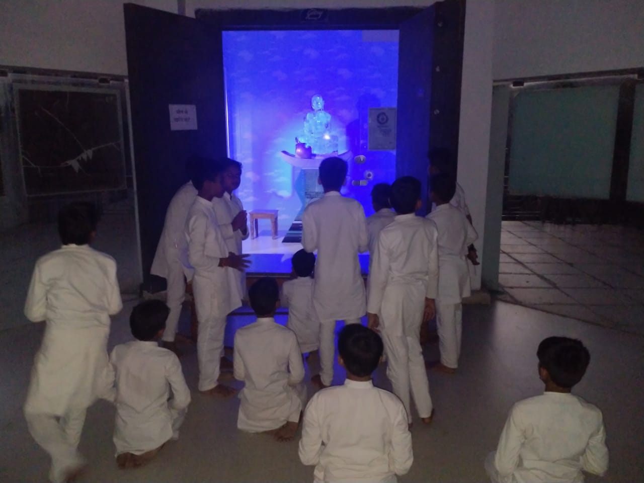 सायं कालीन वेला में स्फटिकमणि से निर्मित अद्वितीय जिन प्रतिमा जो अलौकिक है और विश्व में सर्व प्रथम प्रतिमा जो इतनी विशाल है ऐसे जिन बिम्ब के दर्शन करके 'श्री नवागढ़ गुरुकुलम ' के छात्रों को बड़ा हर्षउल्लास हुआ।