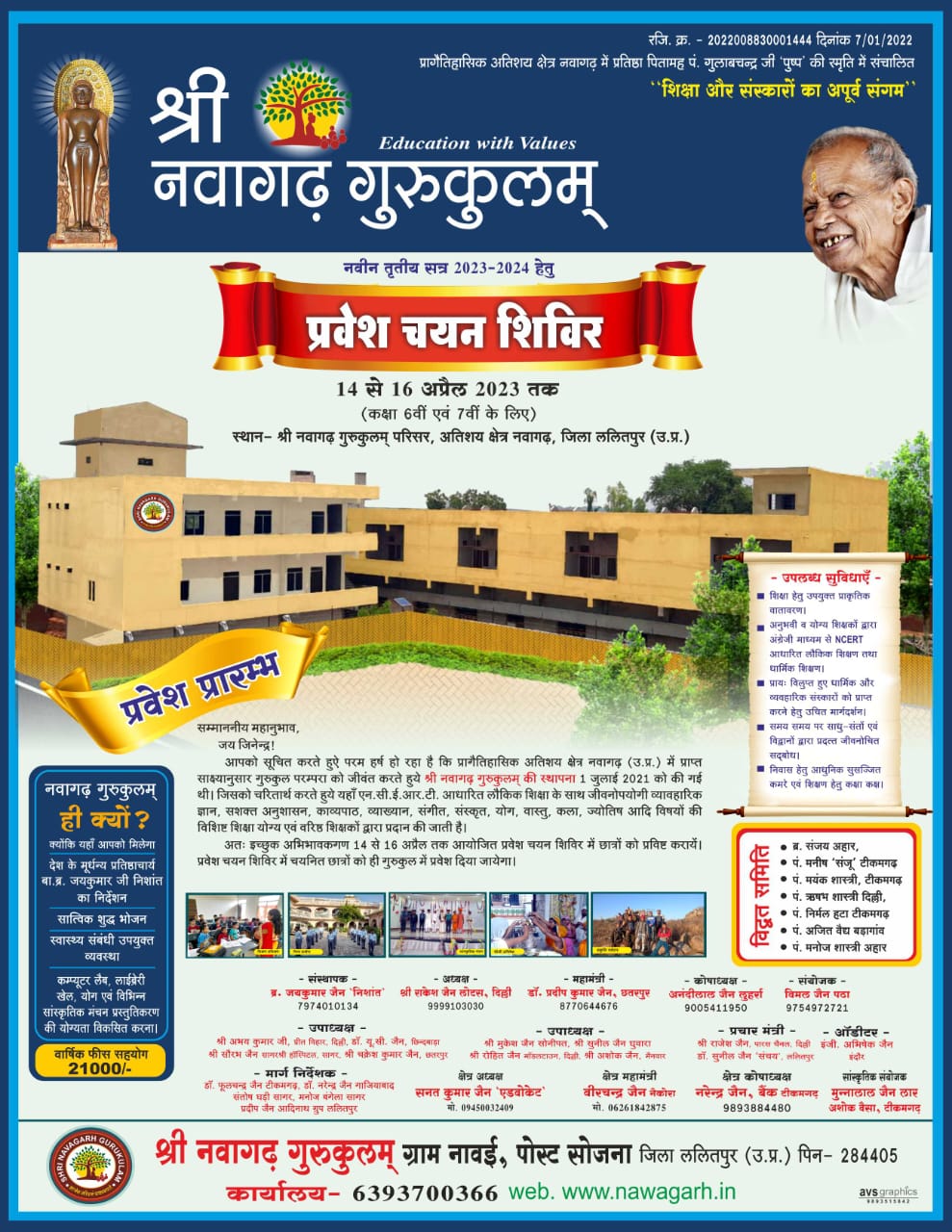 आपको सूचित करते हुऐ परम हर्ष हो रहा है कि प्रागैतिहासिक अतिशय क्षेत्र नवागढ़ (उ.प्र.) में प्राप्त साक्ष्यानुसार गुरुकुल परम्परा को जीवंत करते हुये श्री नवागढ़ गुरुकुलम् की स्थापना 1 जुलाई 2021 को की गई थी। जिसको चरितार्थ करते हये यहाँ एन.सी.ई.आर.टी. आधारित लौकिक शिक्षा के साथ जीवनोपयोगी व्यावहारिक ज्ञान, सशक्त अनुशासन, काव्यपाठ, व्याख्यान, संगीत, संस्कृत, योग, वास्तु, कला, ज्योतिष आदि विषयों की विशिष्ट शिक्षा योग्य एवं वरिठ शिक्षक द्वारा प्रदान की जाती है।