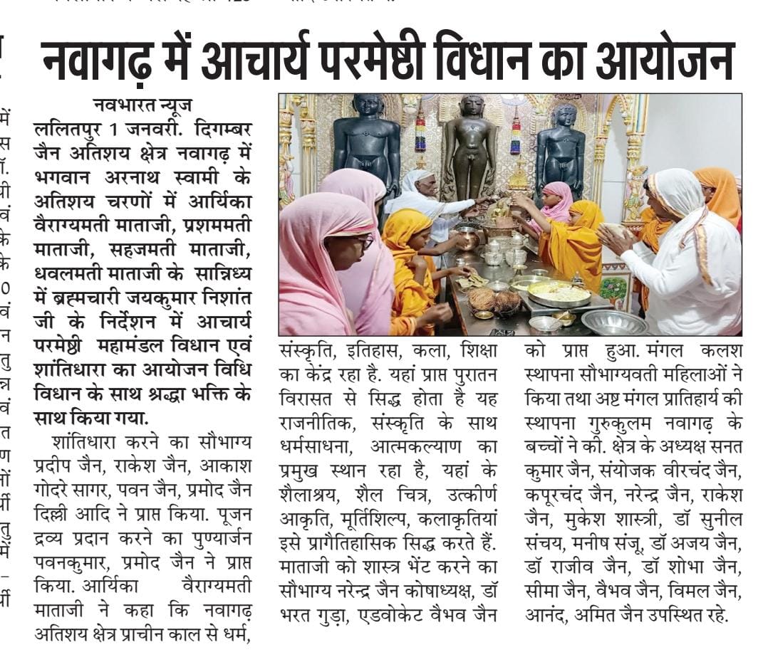 *दिनांक 05/03/2022 शुभमिति फाल्गुन शुक्ला तृतीय शनिवार को प्रागैतिहासिक अतिशय क्षेत्र नवागढ़ जी में श्री अरनाथ स्वामी का महा मस्तकाभिषेक* अरनाथ भगवान विश्व के एकमात्र अतिशय क्षेत्र नवागढ़ में मूलनायक अरनाथ स्वामी का गर्भ कल्याणक महोत्सव आचार्य श्री विद्यासागर जी महाराज जी के आशीर्वाद से एवं आर्यिका रत्न 105 श्री विज्ञान मति माताजी के ससंघ सान्निध्य में संपन्न किया जाएगा। कल मूलनायक श्री अरहनाथ भगवान का वर्ष में एक बार होने वाले महा मस्तकाभिषेक में सभी श्रद्धालु गुंजन करेंगे आप भी यह सौभाग्य प्राप्त कर सकते हैं दोपहर में आर्यिका माता जी के ससंघ सान्निध्य में गणधर महामंडल विधान संपन्न किया जाएगा । *निशुल्क चिकित्सा शिविर दिनांक 06/03/2022 को आयोजित होने जा रहा है*6 मार्च को प्रातः 11 बजे से प्रतिष्ठा पितामह पं. गुलाब चंद जी पुष्प की स्मृति में उनके परिवार जनों द्वारा चिकित्सा शिविर, नेत्र परीक्षण एवं आंखों के ऑपरेशन निशुल्क संपन्न किए जाएंगे। आप सब इस पावन अवसर का लाभ प्राप्त करने हेतु सादर आमंत्रित हैं।
