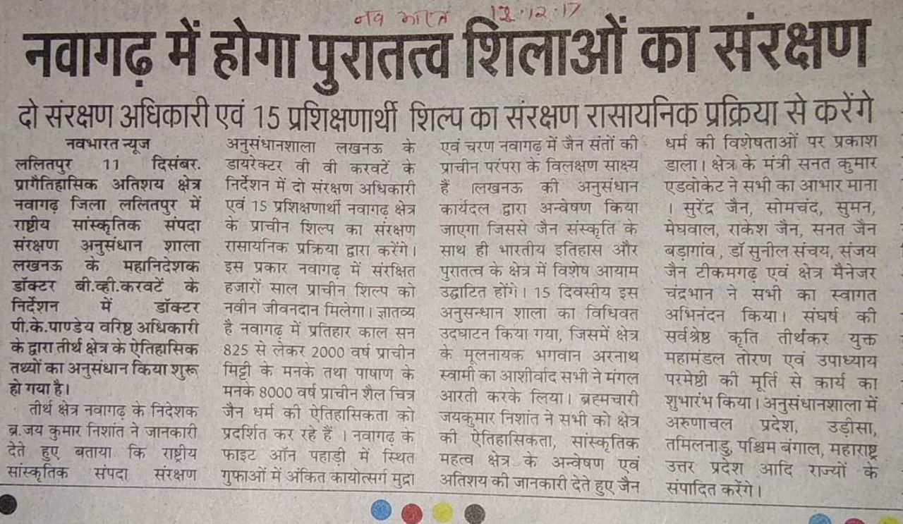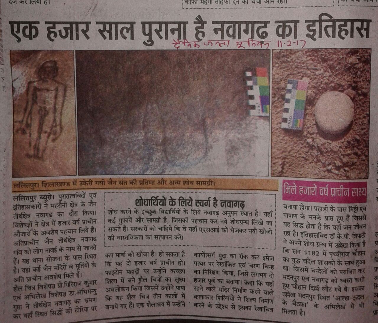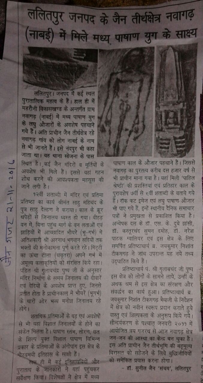 ललितपुर जनपद के जैन तीर्थक्षेत्र नवागढ़ (नाबई) मे मिले मध्य पाषाण युग के साक्षय... Detail - See here
