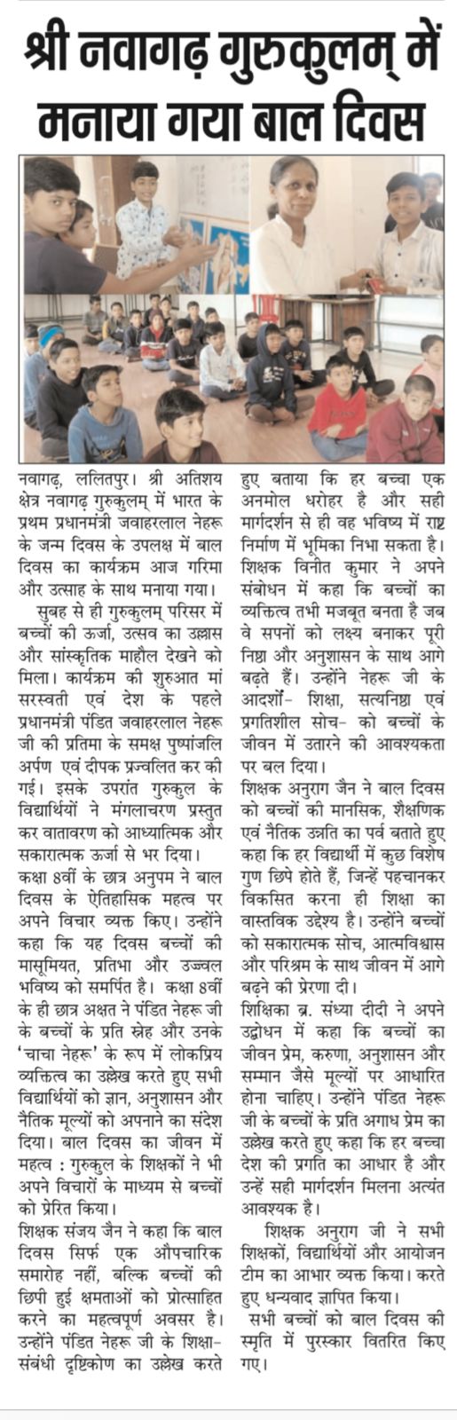 14 नवंबर 2025: नवागढ़ गुरुकुलम् में बाल दिवस उत्साह और गरिमा के साथ मनाया गया...
